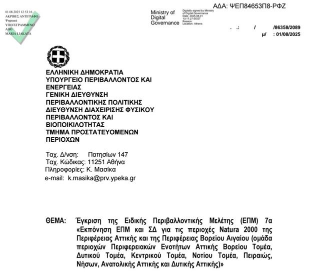 γ) Εγκρίνεται απο τον Γενικό Γραμματέα Περιβάλλοντος και Υδάτων του ΥΠΕΝ η Ειδική Περιβαλλοντική Μελέτη ΕΠΜ 7α